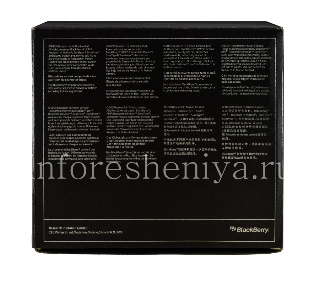 - मुख्य गत्ते का डिब्बा लेबल BlackBerry